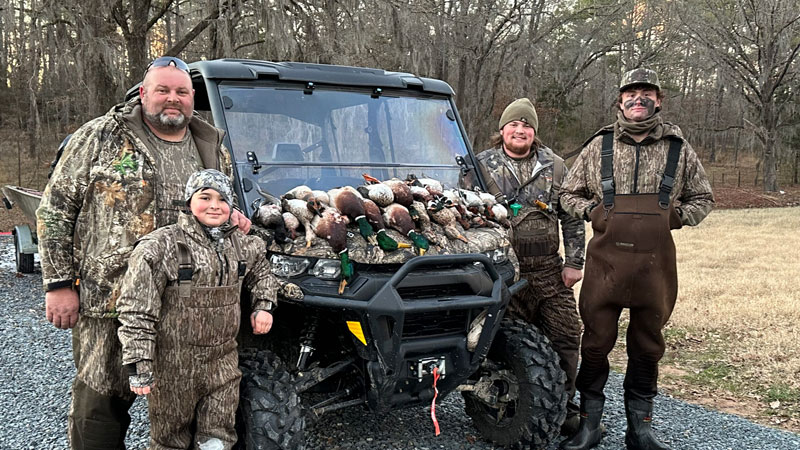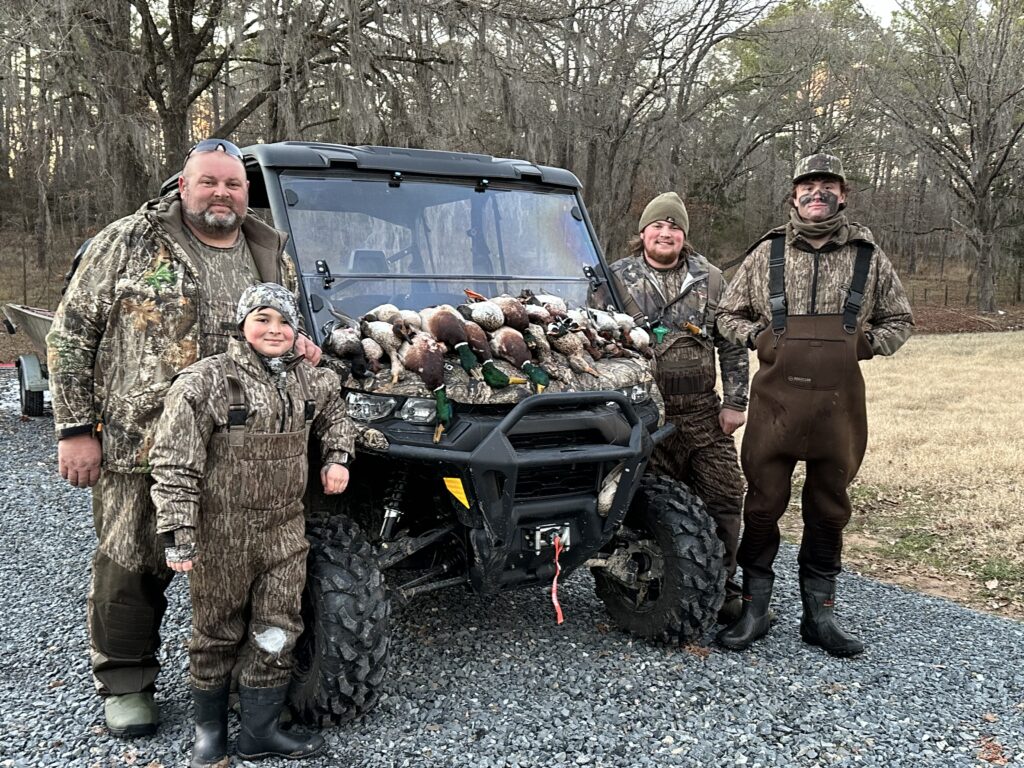 Since school was canceled due to the winter weather, we decided to go get in one last hunt before the season closed. And we are so glad we went. Even though we had to break ice to retrieve, it was worth it. It was an awesome way to end the season. We went on several guided duck hunts this year that just didn’t go very well. So to have our last duck hunt on the Bistineau behind our house be the best one of the year was awesome! Pictured are Bj, Westin and Will Aultman and Jacob Wood. Not pictured is JD Wood. He had to leave and go to work. He wasn’t a happy camper.