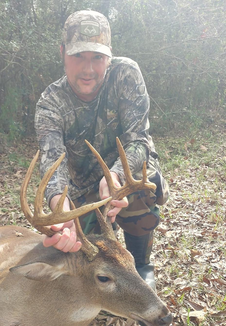 On Dec. 16, Jordan Davis had this buck walk from behind him at 20 yards to the right of his stand in East Feliciana Parish. He was seeing him on cameras almost every night for a couple weeks but finally caught him slipping during the day. This was his first 10-point and it took a lot of time and patience. The deer weighed between 185 and 190 pounds.