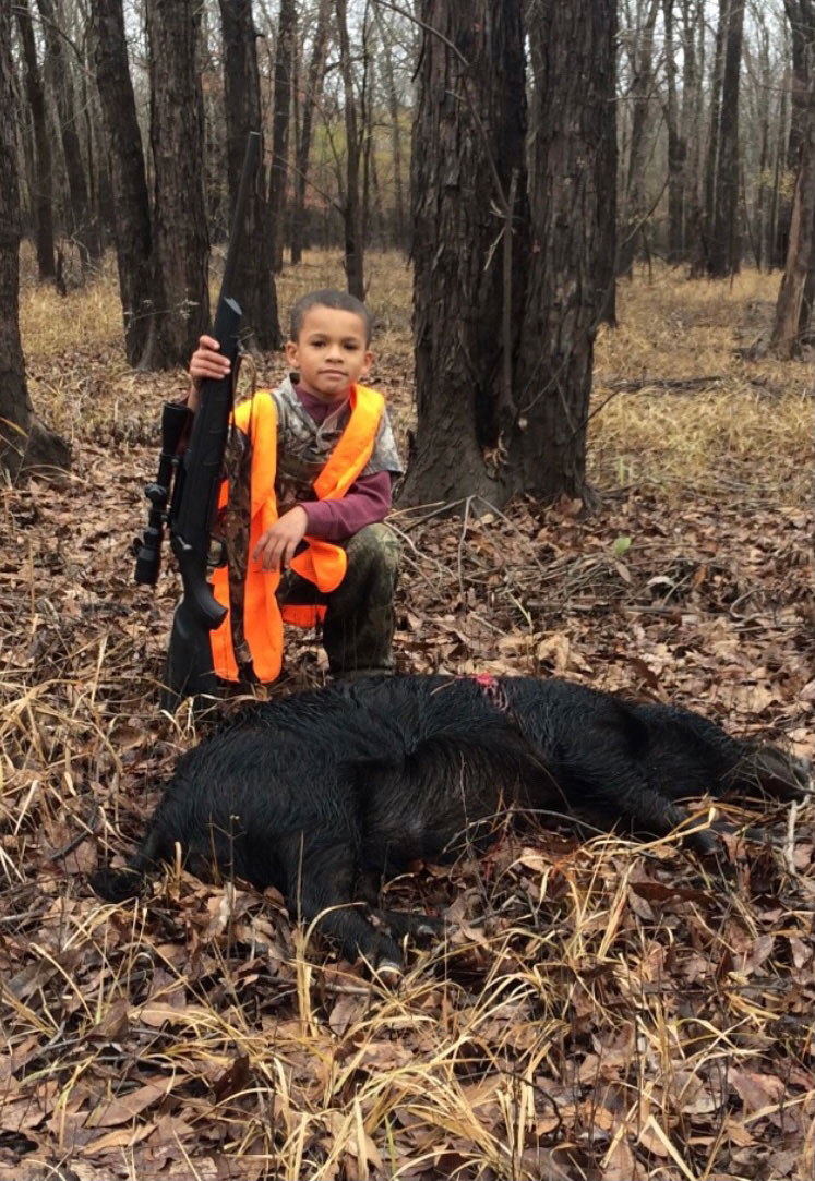 On Dec. 20, Zaidyn Claiborne, 8, and his grandpa, Scott Sagely, went for a morning deer hunt at Catfish Prairie. Zaidyn shot his first hog using a .243.