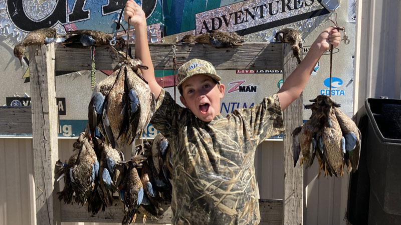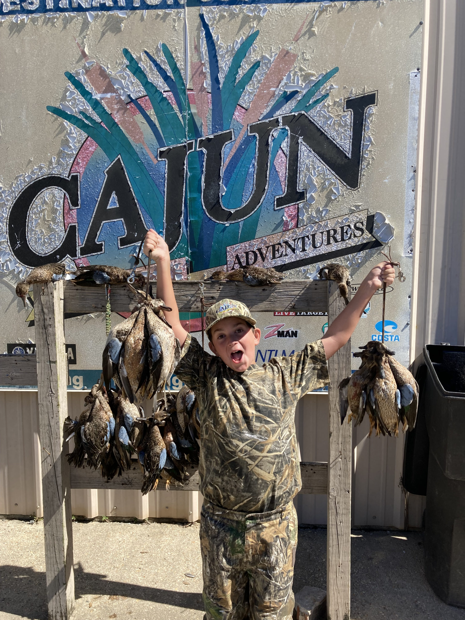 Father and son Don Sampson and John Sampson, 11, from Ponchatoula had a great time teal hunting on Sept. 25, 2021 in Buras with guide service Cajun Fishing Adventures. This was John’s first time duck hunting and he was able to shoot his limit of teal. They were able to bag out a limit of 18 teal on this day including their guide’s limit, Capt. Manuel.