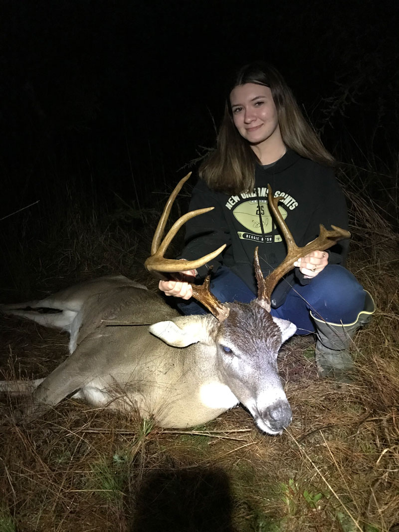Kaleigh’s Thanksgiving buck December 16, 2021 Field Reporter Hunting Reports Kaleigh LaPrairie, 14, of Deville killed this buck Thanksgiving evening, Nov. 25, 2021, in Rapides Parish. She killed the deer with the 30-06 passed down to her from her grandfather. This page is available to subscribers. Click here to sign in or get access.