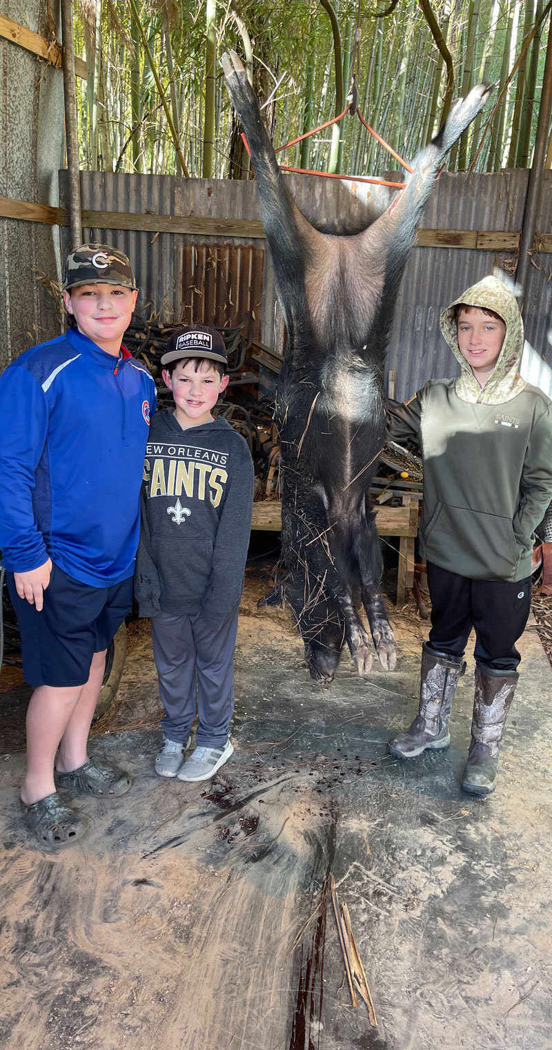 Kason Gautreaux’s 100-pound pig March 3, 2022 Field Reporter Hunting Reports Eight-year-old Kason Gautreaux stands next to the 100-pound pig he caught in a trap and shot Feb. 13. Pictured with Kason is his brother, Owen, and friend, Gavin Trosclair. This page is available to subscribers. Click here to sign in or get access.