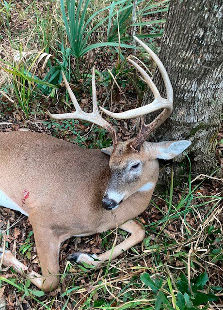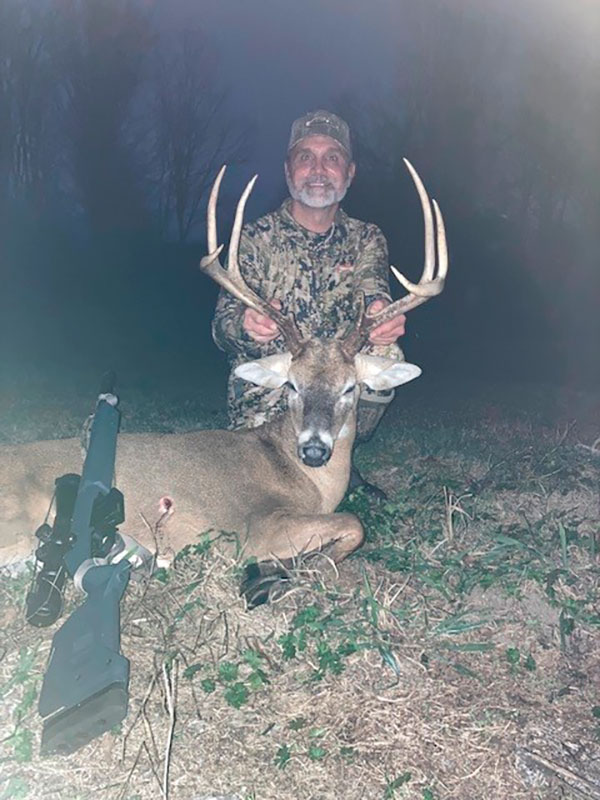 “I was able to harvest this nice 8-point buck Jan. 18 on private land south of Houma, La. I saw the deer on cell camera pics the evening prior, Jan. 17, so I decided to hunt the next afternoon. I highly suspected the buck to be bedded down just north of my stand, and there was a 15 mph south wind blowing my scent straight to the bedding area. I sprayed my stand down with doe estrus cover scent to mask my human scent. I tried a series of doe bleat and grunt calls 30 minutes prior to my corn feeder throwing corn. The grunting and cover scent must have worked because the buck approached from straight downwind at 30 yards only 30 minutes after the feeder threw corn. I waited for him to position himself between two cypress trees with a 1-foot clearing between the trees for a clear shot just behind his front shoulder. I squeezed the trigger on my Ruger American Hunter 308 rifle. After kicking his back legs, the deer slowly walked 10 feet and laid down to expire less than 25 yards from my stand. The deer in this area of Terrebonne Parish don’t typically grow antlers this big, so it is considered an exceptional deer for the area. It’s my personal best buck, although I’ve only been deer hunting for the past two seasons. I am very happy with this result, and I’m anxiously waiting to get the shoulder mount back from the taxidermist.