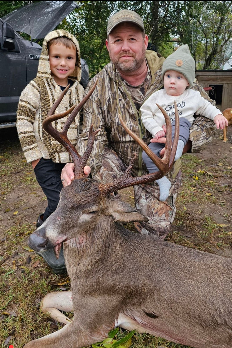 Scott Wylie’s trophy buck December 20, 2023 Field Reporter Hunting Reports Scott Wylie, pictured here with his grandsons, River Hastings and Crew Wylie, killed this beautiful buck in Singer, La., Area 8, on Nov. 10. It is his biggest buck to date and scored 140 2/8. This page is available to subscribers. Click here to sign in or get access.