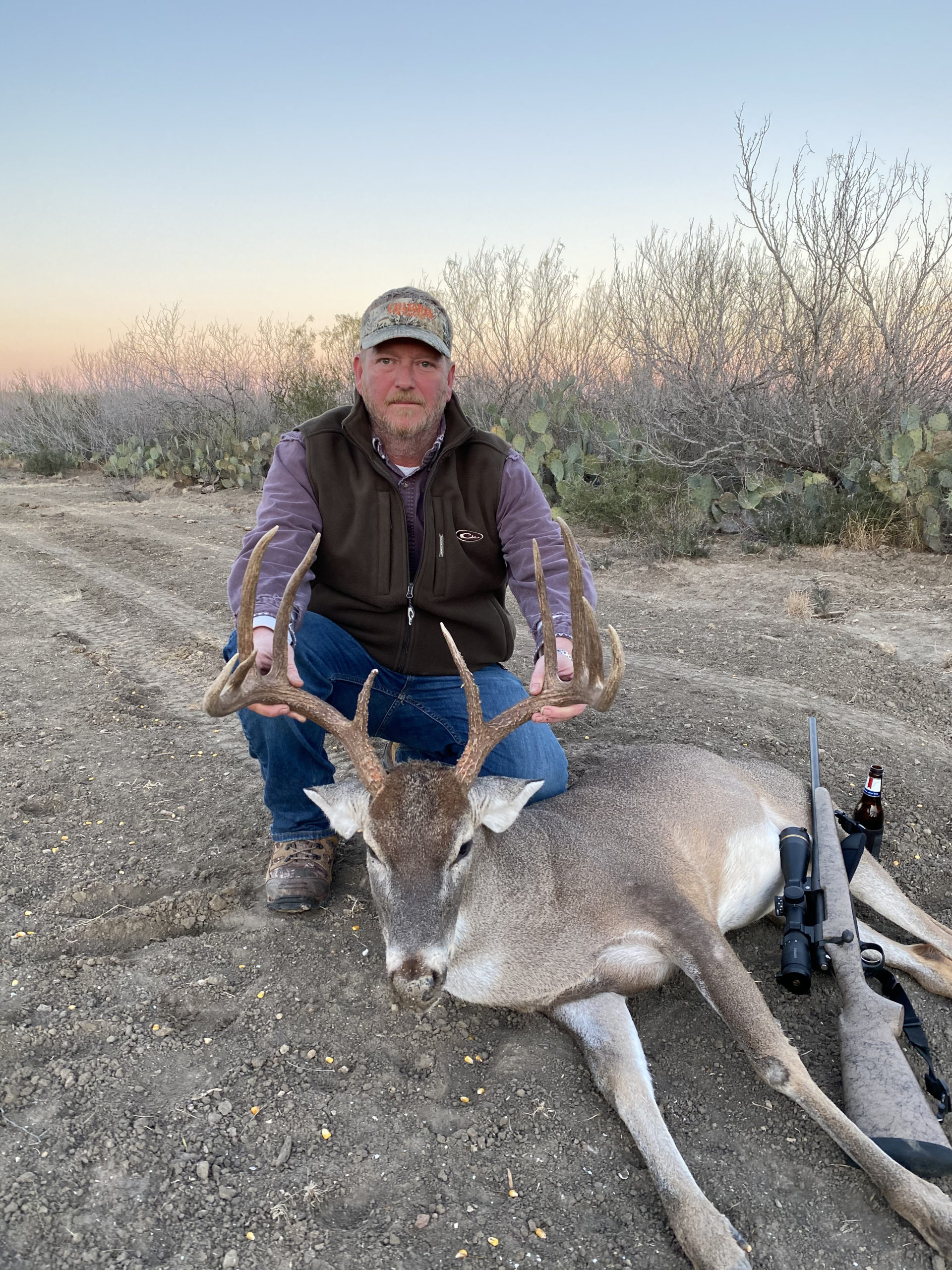 Mike Ryan of Denham Springs shot this buck at the Callaghan Ranch in Encinal, TX on New Years Day. The next day, his hunting buddy shot his buck, and the two bucks scored exactly the same – 150 1/8”