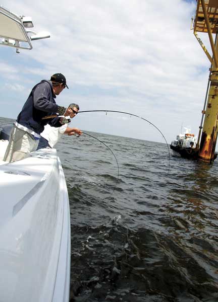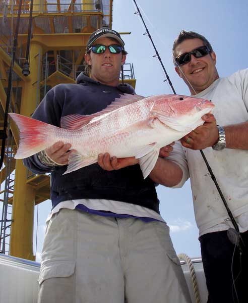 Capt. Kerry Milano eased his sleek 34 Contender up to the rig as his deckhand, Eddie Cerise, Jr., readied the rig hook. With a quick toss, we were securely attached to one of the many platforms that dot the map in the West Delta fields south of Venice. No sooner did the boat come to rest alongside the rig and each of us drop a piece of cut pogie to the bottom than three fat red snapper were hauled aboard.