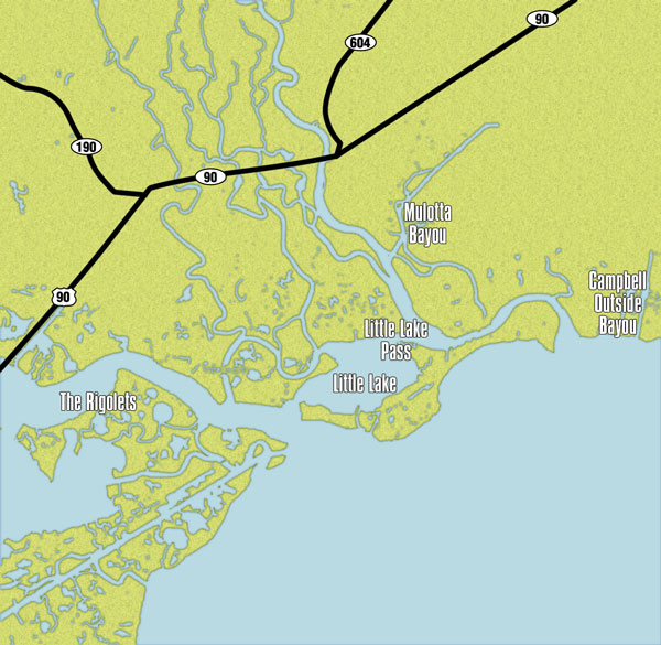 Champagne pointed out that the unofficial dividing line between freshwater and saltwater fishing is around the Highway 90 bridges about four or five miles north of the Rigolets. Although he’s caught redfish as far north as the I-10 bridge, that is more a rarity than a definite possibility.