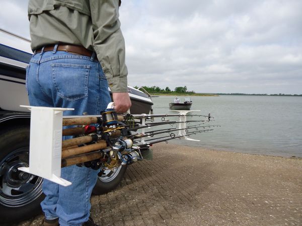 Fishermen can easily transport and store up to eight light-tackled rod and reel combos with the Angler’s Tote from MD Outdoor Specialties. It is a practical, affordable and convenient device that uses upper and lower clips to separate the rods and hold them in place.