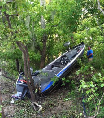 In the blink of an eye, the Prairieville resident went from cruising at about 55 mph to holding on for a bumpy ride as his 20-foot Stratos 200XL veered right, skidded over several small tallow trees and ran completely up onto the bank.