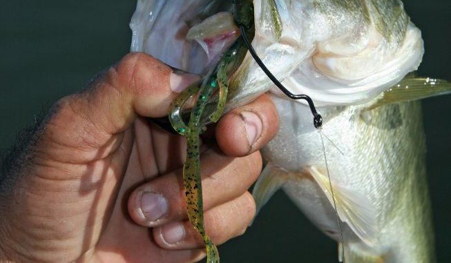 Fish a ¼-ounce white Humdinger spinnerbait or june bug or june bug/red Brush Hogs under a ¼-ounce worm weight.