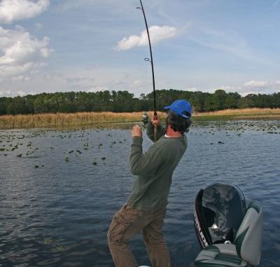 Buz Craft fishes his grass-ripping technique with a stout, 7-foot rod and a 7:1 reel. Most scenarios find 15-pound fluorocarbon sufficient, but in heavier vegetation he’ll go with 65-pound PowerPro braid.
