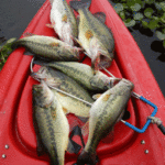 Locations to fish bass out of a kayak are virtually limitless. “Combat” launching off the side of a road can be inconvenient. However, developed boat launches offer easy access to the water and safe parking. Most commercial launches have conveniences like restrooms and also sell drinks, ice and tackle.