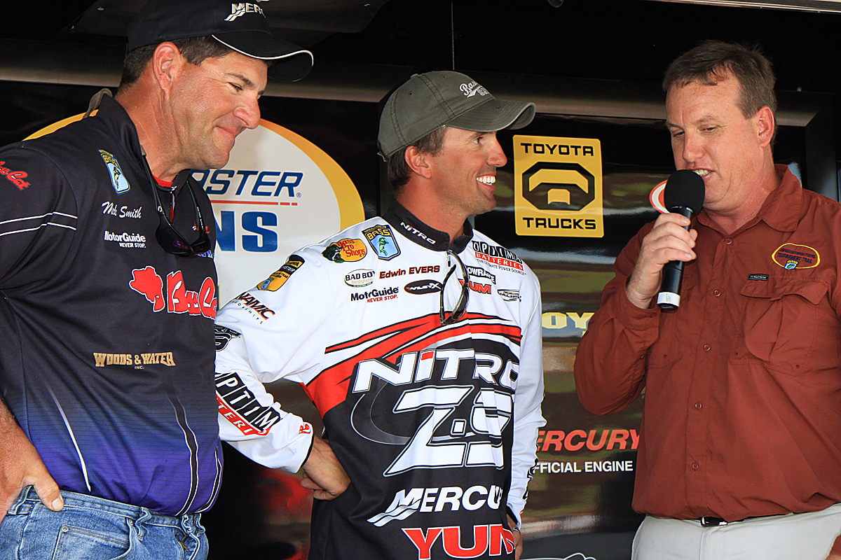 Smith of West Monroe held the lead after each of the first two days of competition, but Evers jumped from third to tie Smith when the scales settled on identical weights of 35 pounds, 9 ounces.