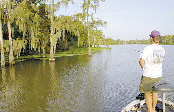 The Atchafalaya usually gets to its lowest point this month, which means the water in the Basin is clear and its bass are stacked up.