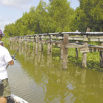 One technique that requires both patience and a great deal of finesse, along with the ability to read the edges and cover, is punching grass. McCorkel used this tactic extensively along with his acumen for finding fish in the Orange Barrel Canal, where we landed several bass and a couple of large bonus goggleye.