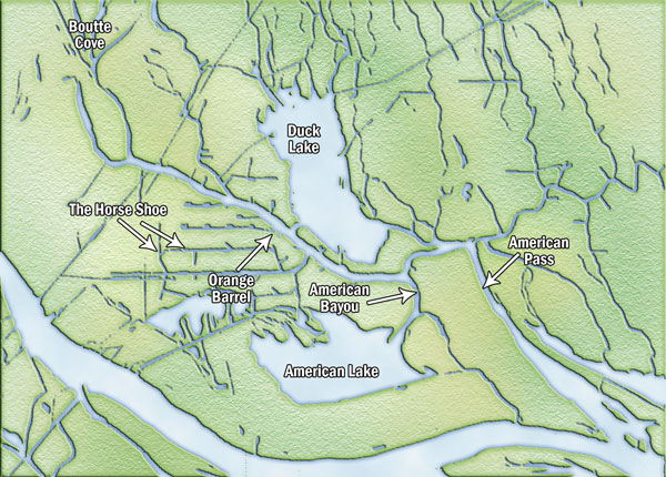 From Cow Island, Lost and Henderson lakes in the north near Butte La Rose at I-10 to American, Duck and Flat lakes in the south touching Highway 70, the Atchafalaya Basin’s waters flow through veins of bayous within its boundaries.