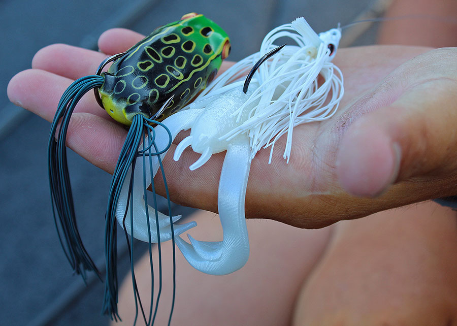 Other baits that will work include frogs, jigs with or without trailers and topwater baits. For topwater baits, anglers sometimes remove the back set of hooks to keep the lure from hanging as easily. The way fish hit on a hijack, they eat the whole bait, so they are going to get the front hooks.