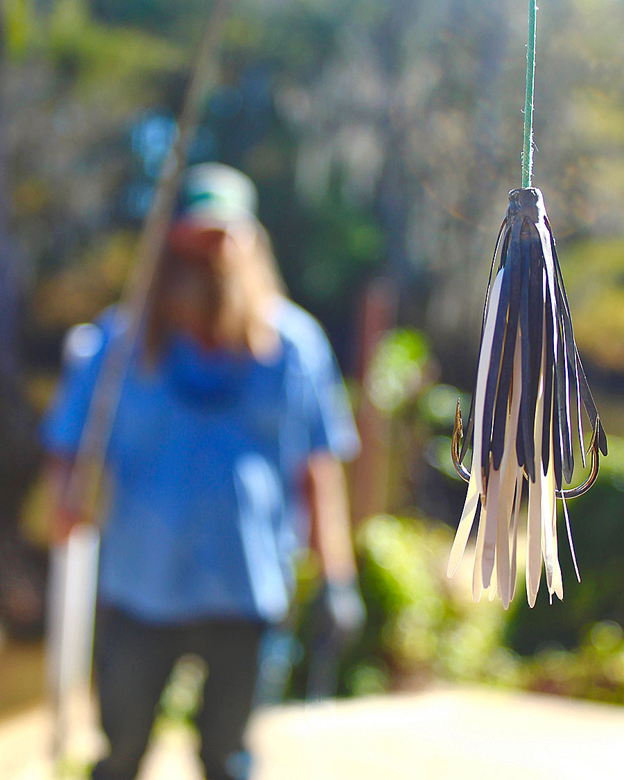 Miller’s neighbor depended on one major bait that cost about 30 cents back in the day. He would take a set of treble hooks and tie it on his braided line. He would then take a silicone spinnerbait skirt (the kind you find on an H&H) and put it over the hooks. That’s the bait. His favorite colors are black and yellow or black and white. That gives the fish both ends of the color spectrum, so it works in most any conditions.