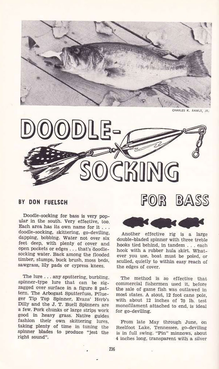 Most anglers today would scoff at such a technique, but if you want to catch bass in a fun new way — and catch lots of bass in a fun new way — then go old school and try doodle-socking. Miller said it still catches fish, but most anglers that do it won’t talk about it much. In a day when it’s almost impossible to keep secrets, this one’s still pretty secure.