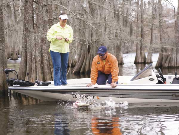 Kelli Batten lives in West Monroe, and she wants to learn how to catch bass well enough to be able to fish tournaments in the future. Her only problem is that the bass-fishing learning curve has become so steep that it’s almost impossible to climb it by herself. Wondering what would happen if she got an on-the-water crash course on basic bass fishing, West Monroe tournament angler Kenny Covington volunteered to be her instructor.