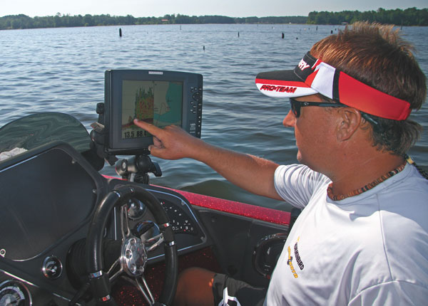 As with any type of structure, consistent grass success hinges on locating the areas of greatest attraction to the fish. Johnston looks for secondary points, stumps, drains and any other distinguishing feature. The new generation of sonar, which offers side views and 3D imaging, can greatly benefit your search by revealing the sweet spots, or at least the features that create them.