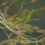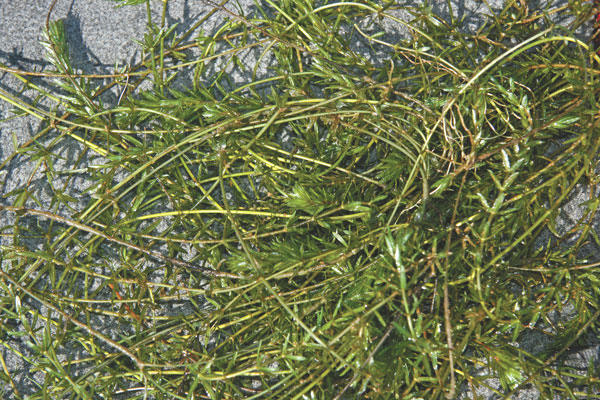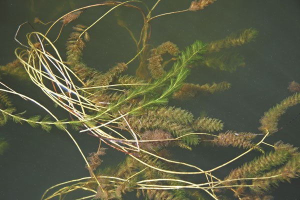 Peppergrass grows in wispy stalks sprouting elongated green leaves that lie flat at the surface. Coontail takes its name for the bushy, brownish foliage surrounding its stalks, while milfoil’s upward slanting branches with green leafage surround its stalks resembles tiny Christmas trees. Hydrilla grows in long, tangled masses with individual green leaves grouped around the stalks.