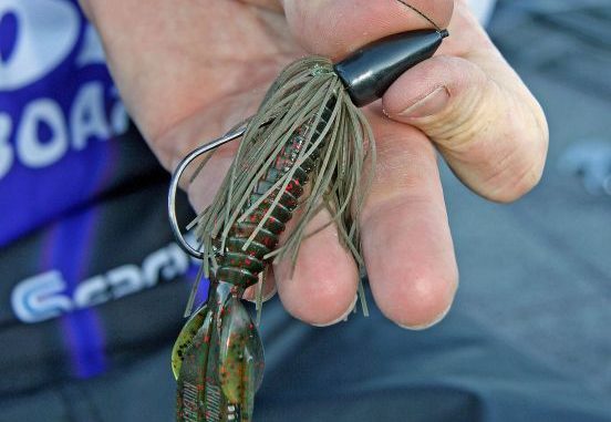 Thick-bodied Beaver- and craw-style baits are your common punching plastics. You can’t go wrong with the conventional wisdom of darker-colored baits for dim days and/or stained water and brighter colors (or at least bright reflective flecks) on sunny days.
