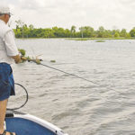 “Baits like the Lucky Craft RC series are designed to be reeled fast,” he explained. “In fact, if you reel them slow, you won’t get quite the same kind of wobble as you get when you’re really cranking them in. A lot of anglers throw crankbaits on a 5:1-gear-ratio reel, but that’s too slow for a square-bill.”