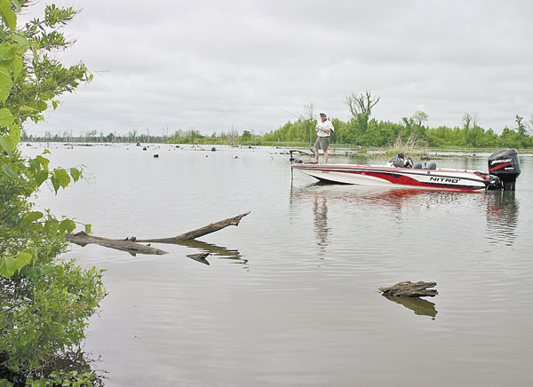Reehm pointed out backwaters like the Goose Pond and the Jungle, and Havard mentioned Sullivan’s and Red Oak as being two of his favorite places. While these have been productive areas in the past, Havard added that the location really doesn’t matter. As long as you can see some logs, stumps or laydowns, you can catch fish on the square-bills.