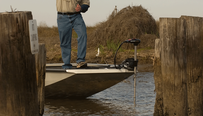 Reehm pointed some high-percentage places around Delacroix would be anything that creates a break in the current. Old duck blinds, laydowns, rocks — anything that blocks the current and creates a pocket of slack water is a high-percentage place.