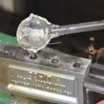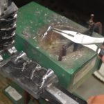 4) Ladle lead into the closed mold, open it, remove the slugs and add them back into the pot. Do this five times to heat the mold adequately.