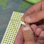 9) Use a small brush to paint a white base layer of lure paint or fingernail polish on the head, and then hang them to dry.
