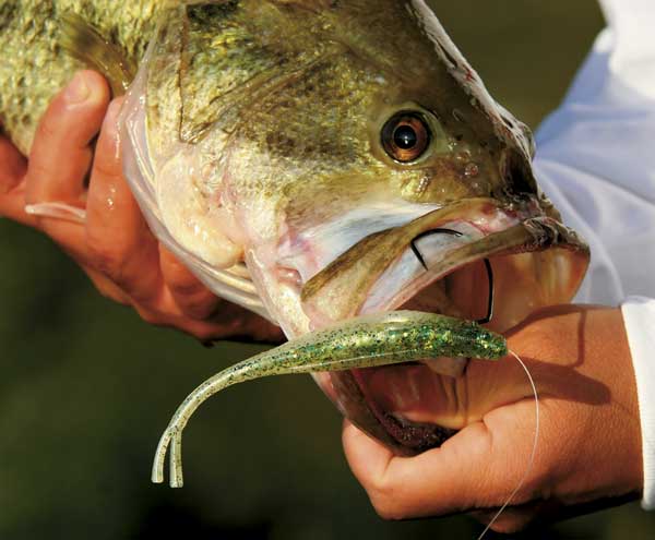 Soft jerkbaits have just as much going for them with the added bonus that they are single-hook lures that can be fished in the heaviest of cover. Landing percentages are also higher on soft jerkbaits once a fish is hooked well because the bigger, single hook is harder for bass to gain leverage and throw.