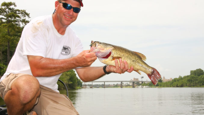 While anglers hunting big bass head up D’Arbonne Bayou, many anglers are content to fish the river to get in on the fast action with schooling bass. There will be some good fish in the river lakes just off the river, but the best place to find schooling fish is at the mouths of the cuts that lead back into the backwater lakes.