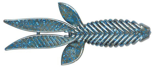 Water displacement also is what this soft plastic is all about, he said. The creature bait’s body has attention-getting ribbed body, two big flappers and a pair of long legs that brings bass in for a closer look, he said.
