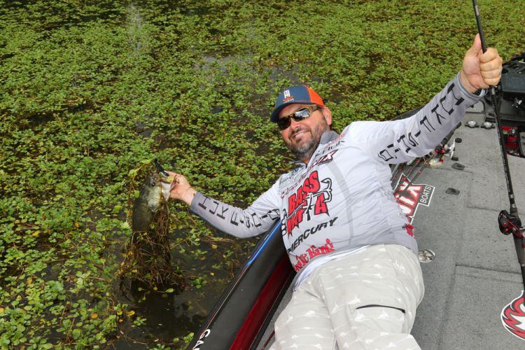 Hackney says his No. 1 pocket-hopping bait is a Strike King KVD Sexy Frog (no pun intended), but he’s also going to keep a KVD 1.5 squarebill and a Strike King Thunder Cricket bladed jig handy. Swimming a Hack Attack swim jig also delivers this time of year, as does flipping a Strike King Shimmy Stick with a light sinker.