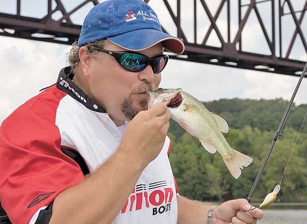 “The Shakey Head is just a little bit more of a finesse presentation, which appeals to the spotted bass,” he said. “It’s just like fishing a Texas-rigged worm, but the action is a little more erratic, and I think that attracts the spots. Have a good supply of the heads, though, because the smaller weights tend to fall down into the cracks around the rocks, and you’re going to wind up breaking them off.”