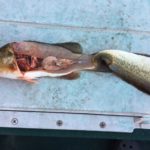 The first bass came on board at 9:15 a.m. as half of a double. It was followed by a bull red, then another bass. Chaumont replaced his RIP Stik with what was then a prototype of what is now sold as a Vudu Vixon, a paddle tail-style lure.