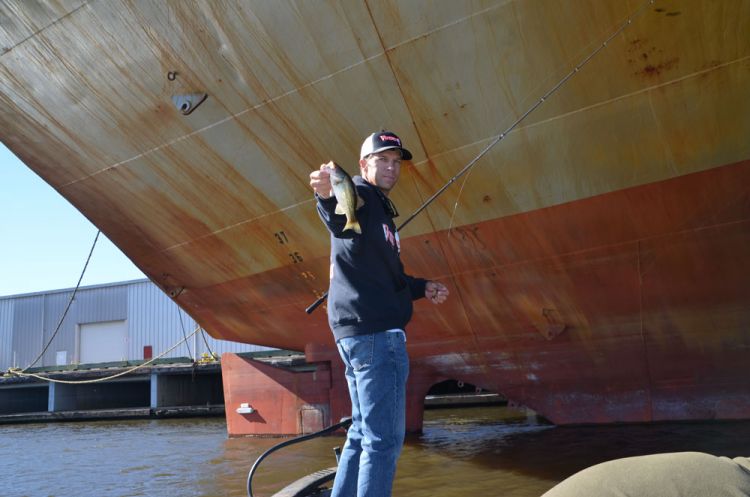 It felt unusual to see largemouth bass come out from under the keel of an ocean-going ship. The bite got faster-paced as they moved to the propeller and rudder of the vessel.