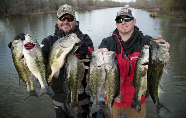 While filming an upcoming episode of Sportsman TV yesterday on the Spillway side of the Basin in the Grand Lake area, Bassmaster Elite Series pro Greg Hackney caught lots of fish despite the cool temperatures.