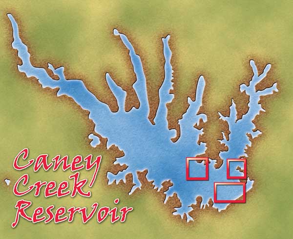 “What happens during the fall is the threadfin shad start moving to the more comfortable deep water down by the spillway,” Halbrook said. “When the shad start moving, bass will pull out off the creeks and the upper part of the lake, and move down there with them. Some off them will move down the actual Caney Creek channel, but many of them will move wherever the shad are moving.”