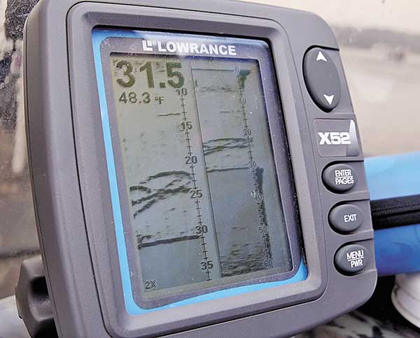 While the bass may show up as a half arch or a full arch, Halbrook doesn’t pay as much attention to them as he does the giant balls of shad that show up on his screen.