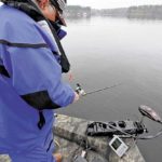 “Whichever way you do it, it’s extremely important to follow your lure back down to the bottom with your rod tip,” he said. “If you let it tumble back down on a slack line it’s going to get tangled, and you won’t feel the bites. Bass eat these lures on the fall, and you’ve got to maintain constant contact to feel it. Just lower your rod tip at the same rate that the lure is falling. I’ve found that braided line or the fluorocarbon stuff is perfect for this kind of fishing because of the low stretch.”