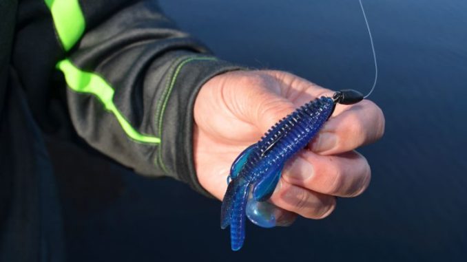 “If you bury the hook, the bait will wad up on the hook on the hook-set,” he explained. “The hook can’t easily penetrate through the heavy body of the creature bait into the jaw of the fish.”