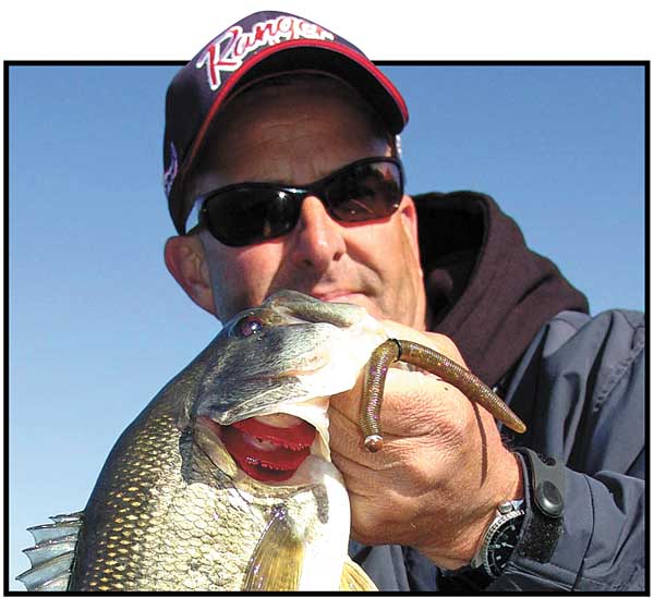 Iaconelli suggests weighted worms with sink rates of half a foot per second for depths of a foot to 6 feet. In 6 feet or more, he’ll use worms with the foot-per-second sink rate. In depths of a foot or less, unweighted wacky rigs are the way to go.