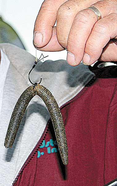 “I feel like you’re putting the weight in the thicker part of the worm so you get more angle to the fall,” he said. “Things in nature fall head first at an angle when they’re dying, so this looks most natural.”