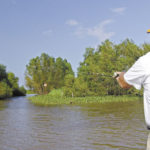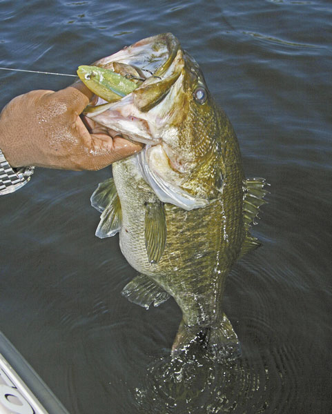 The advantage, Guidry said, arises when a bass wants to eat a moving bait, but doesn’t want to dry his lips in the process. Hot days, clear water, high pressure — any of these factors may find the fish disinclined to topside appearances, so a subsurface presentation is the best approach.