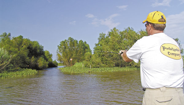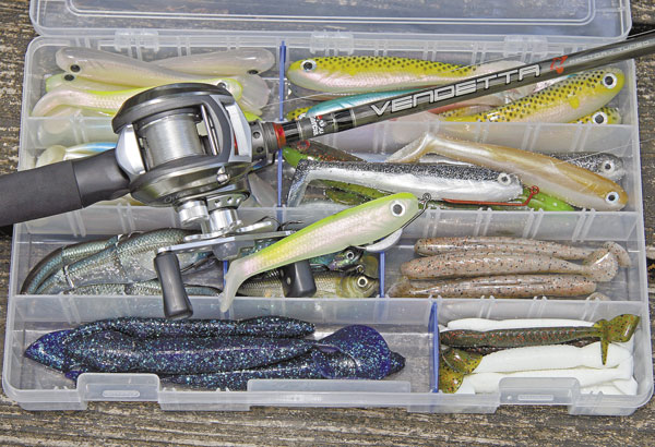 Favoring a V&M Kickin Shad or Hightail Shad, Opelousas angler Jeremy Guidry said the soft-plastic swimbait’s biggest advantage over a hard bait of similar size and shape is its ability to fish in and around vegetation. Whereas a hard bait’s dangling treble hooks would grab grass on every cast, a soft swimbait slips through the salad with relative ease.