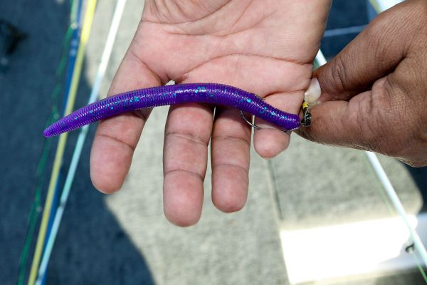 “Basically, when the water temperature is a cold 49 degrees in the marsh, what I normally use — most of the time — is a single-blade spinnerbait that can dive a little deeper and can be fished a little slower,” he explained. “My second bait of choice for winter fishing is an 8-inch lizard.