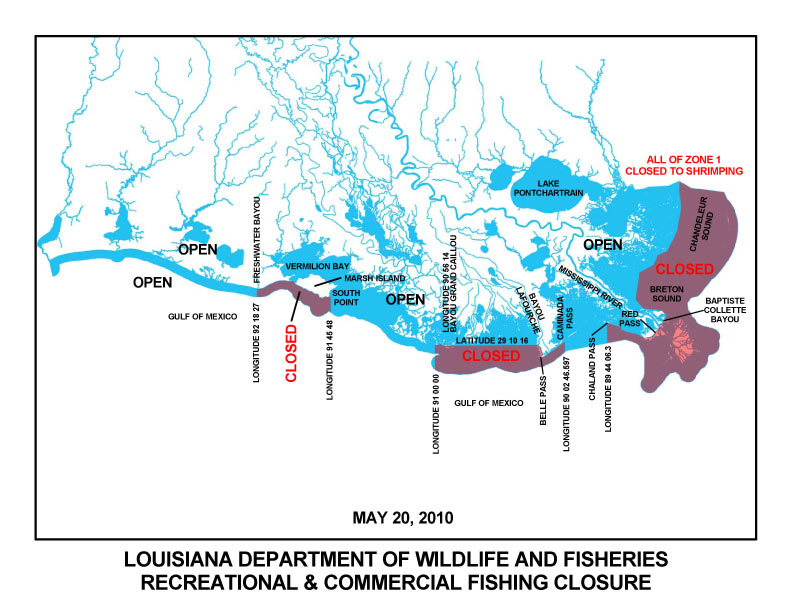 Click here to see the LDWF map of current state closures. To see a full-sized LDWF map of state and federal closures, click here.